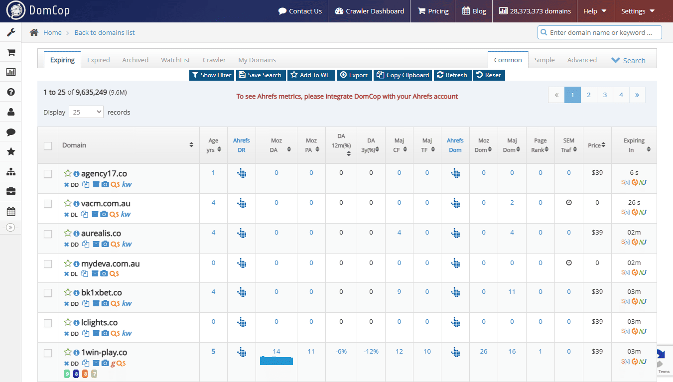 For many SEO professionals, DomCop is the primary choice for discovering aged domains. Its main advantage is the sheer volume of data it collects from multiple sources, including GoDaddy Auctions, NameJet, and various public drop lists.