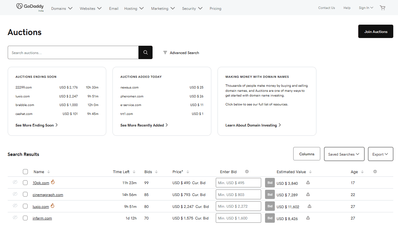 GoDaddy Domain Auctions