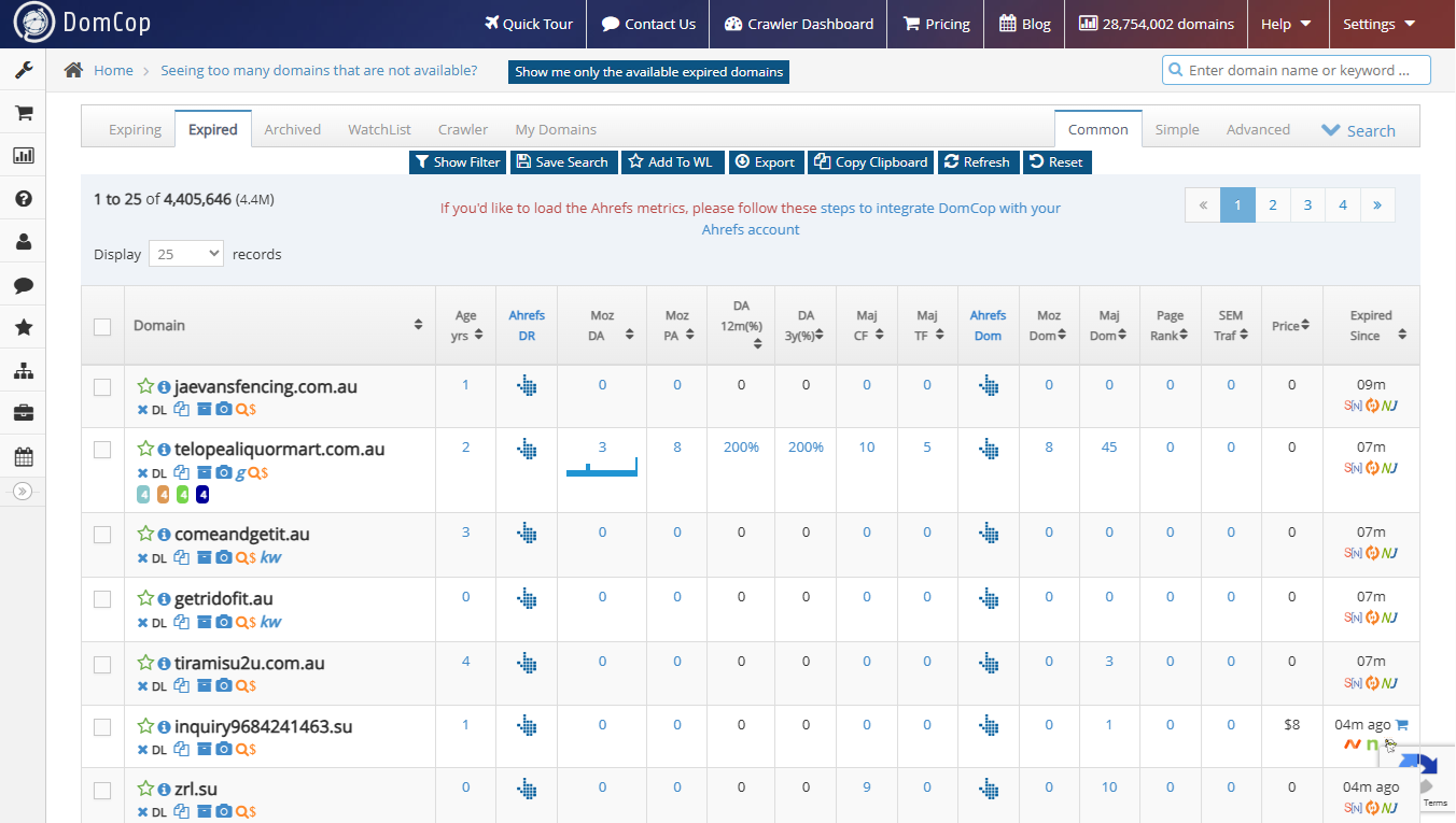 Since more than 200,000 domains expire every single day, it is impossible to check each one manually. You need a tool that does all the heavy lifting for you. With DomCop, you can find expiring and expired domains that are high in value, have good domain authority, and have a low spam score.
